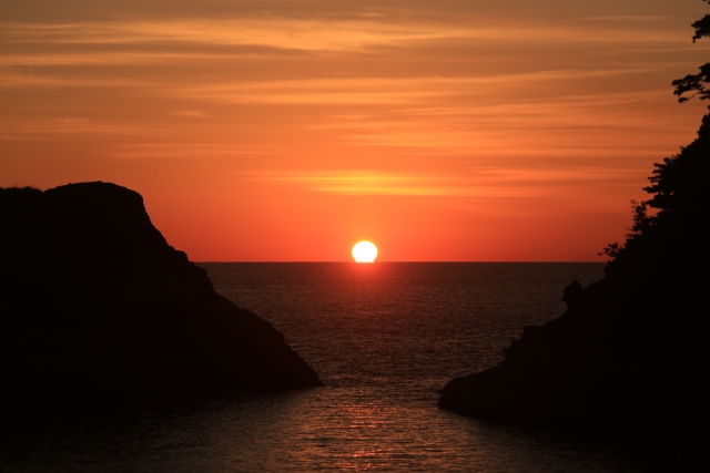西伊豆はきれいな夕日を見ることができます。晴れた日の夕日は最高です。水平線近くに雲が出ていると夕日は見られないかもしれませんが、薄い雲であればきれいな夕焼けが見れるかもしれません。プロっぽいカメラを持った人たちが、堂ヶ島公園から136号線沿いに乗浜海岸に向かって2〜3分歩いたところの歩道で写真を撮っているのをよく見かけます。